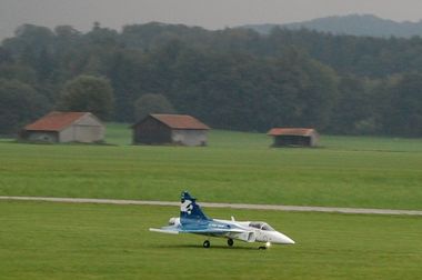 ![]() Der Turbinensegler von Josef Sixt beim Start. | ![]() |